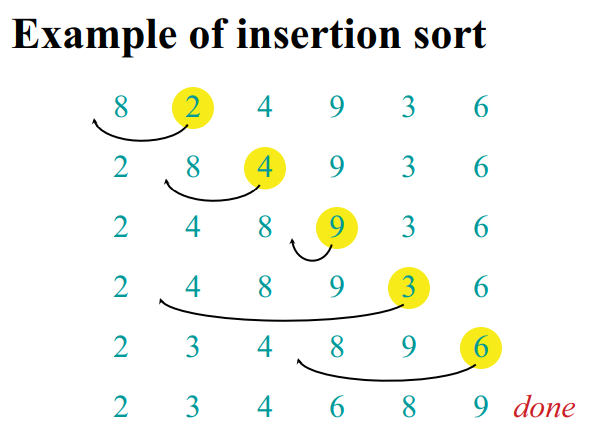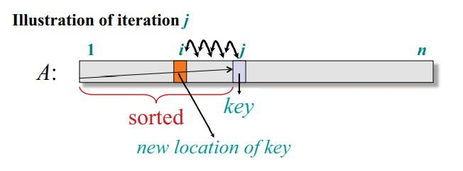 이미 정렬된 sub 배열 A[ 1.. j-1 ]에 A[j]를 삽입.